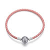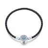 This exquisite bracelet features a round clasp design adorned with dazzling clear CZ stones, creating an eye-catching focal point. The braided leather cord adds a contemporary touch while ensuring comfortable all-day wear. Made from 100% authentic 925 sterling silver, this piece is built to maintain its lustrous shine for years to come.